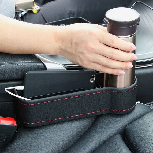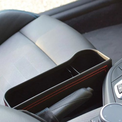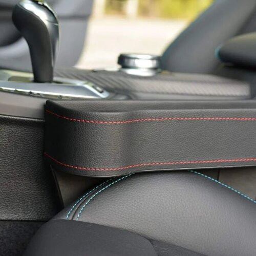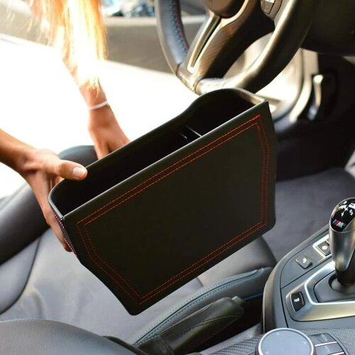 Crafted with quality faux leather, our Premium Car Seat Organizer is designed to universally fit and add extra style to any vehicle. No more painfully shoving your hand in the gap to nowhere between your seat and center console searching for that pen or AirPod bug. No more dangerously fishing around your center compartment while driving for that lip balm or pair of sunglasses. Our organizer fits right in that infamous seat-center console gap so items no longer go missing. Instead, you can keep everything sturdily in place — and within arm’s reach — from your phone to drink to sanitizer and spare coins. Our Premium Car Seat Organizer is the perfect way to keep yourself organized on the go.