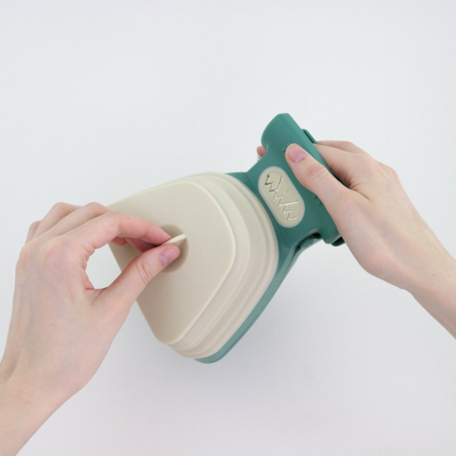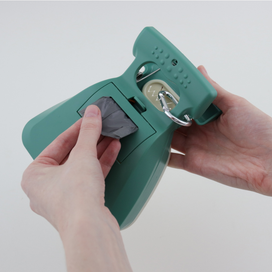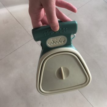 This thing seems silly to have, but it is a big help. No more warm squishy feeling when picking up after my dog. I love that it works with standard poop bags since I have so many of them. It’s a huge plus that this thing stays clean too. Simply put this device into a poop bag, open it, push the bag into the “jaw” and secure it in the silicone teeth. Once you’re done picking up, you can simply leave the jaw closed, pull the back back around the device, and tie it then open the jaw over the trash and boom, mess averted.