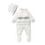 • Two-Piece Set: Includes a cozy knit romper with foot wrapping and a matching hat to complete the look.