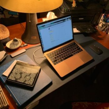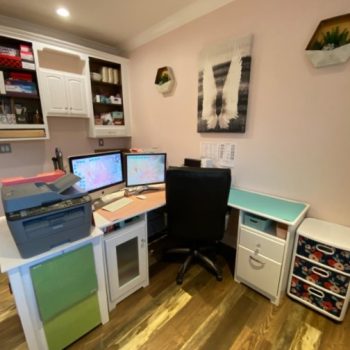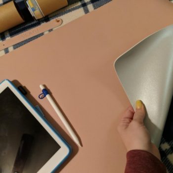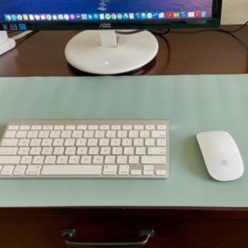 Since quarantine knocked me back to working at home (attorney), and we have a built in desk in the kitchen (we have A home office/music room but it’s not super conducive to my working since my husband also works at home), I use my laptop at home but I like to have the separate mouse and didn’t have a mouse pad.