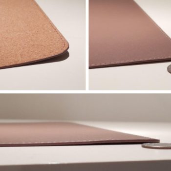 Note that there are two slightly different mats being advertised here. One version has PU on both sides (either the same or different colors), and the other type is PU on one side, with cork on the other. The cork version doesn’t come with a carrying strap, and it also has a stitch (entirely decorative) around the perimeter that doesn’t appear to be included on the dual PU type. This review is a recommendation for the cork version only. Many of the negative reviews mention sliding of the mat, which I suspect is more of a problem for the dual-sided PU version. I’m using the cork side down on a desk with a laminated (melanine) finish, which is fairly smooth, and the mat doesn’t budge at all with only a laptop, mouse and coffee cup holding it down. It also lays (almost) perfectly flat. With the PU side down, there is a noticeable curl at the corners, but with the cork side down, the corners only raise slightly (normally unnoticeable), and only for a couple inches from the corner (the attached photo shows how it lays straight out of the box). A standard wireless mouse works without issue directly on the PU surface.