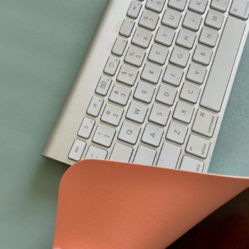 It's perfect for my Apple wireless keyboard and mouse. It protects the main work area of my desk while not interfering with my laptop/external monitor arrangement and other desktop items. The colors are even better than I had expected. the orange is more of a soft peach color, and the green is a silvery sage color. The pad arrived rolled with tissue paper in a sturdy box with an enclosed silica packet. Love this product!